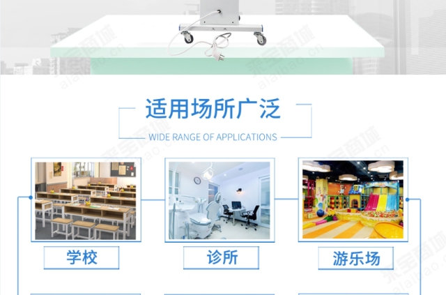 移动式紫外线消毒车高效消毒,可用于餐饮、酒店住宿、医院、学校、商场超市、公司、家庭、公共交通等相关场所的消毒工作